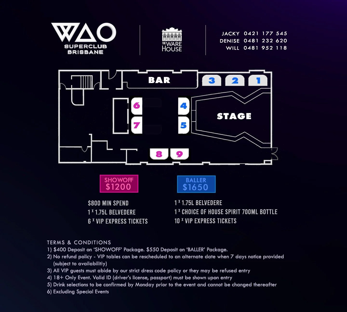 Any VIP Table bookings that do not arrive before 12:00AM or do not attend will have their tables re-sold and deposit paid will be forfeited.